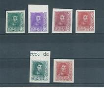 No catalogados ni expedidos, existe una serie de 14 ejemplares de 10 céntimos, sin dentar, también de 1938, con pie de imprenta de FOURNIER VITORIA, en diferentes colores no adoptados; rarísima  y de elevada tasación. Edifil nº NE 59B                     Correos